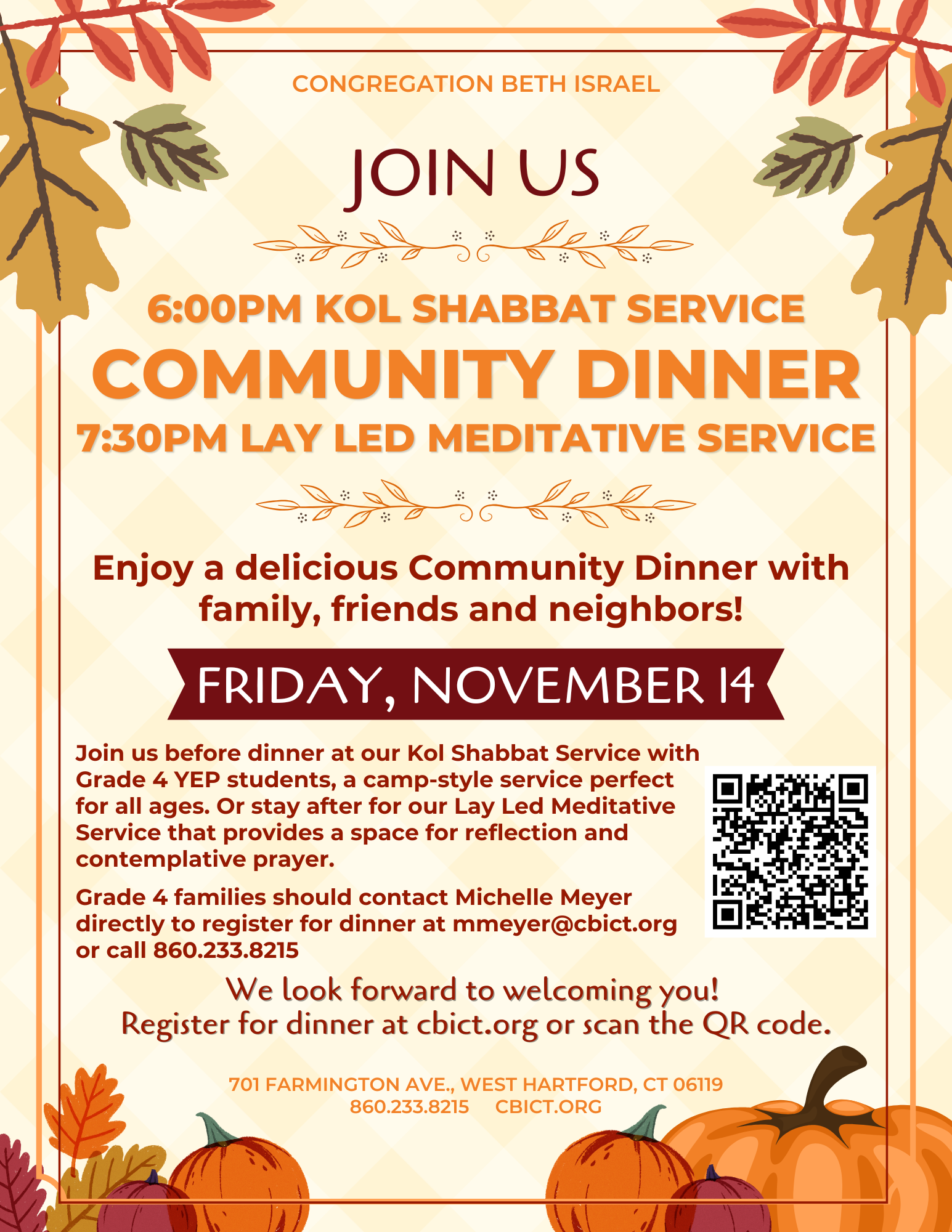 Join us afterwards for a delicious community dinner. Grade 4 families should contact Michelle Meyer at mmeyer@cbict.org or 860-233-8215 directly to register for dinner, don’t sign-up online. CLICK HERE TO REGISTER